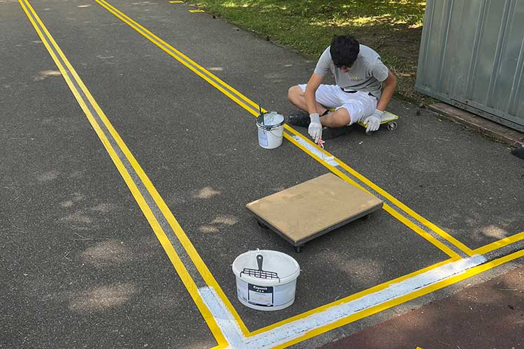 Markierungsarbeiten auf dem Pausenplatz